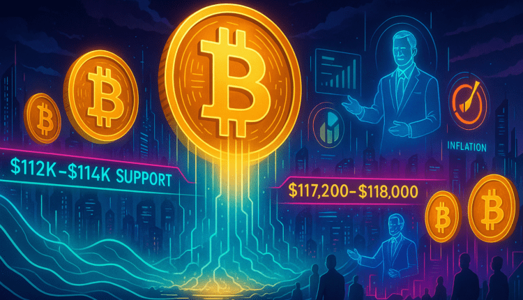 Bitcoin is currently consolidating in a narrow range between roughly $112,000 and $118,000 ahead of crucial U.S. inflation data (PCE index) and multiple Federal Reserve officials’ remarks — setting the stage for significant volatility.