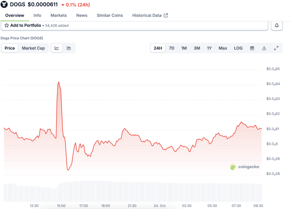 Price-prediction platforms such as CoinCodex indicate that DOGS is likely to trade within a short-term range of ~US $0.000042 to US $0.000061 — suggesting limited upside unless a new catalyst emerges.