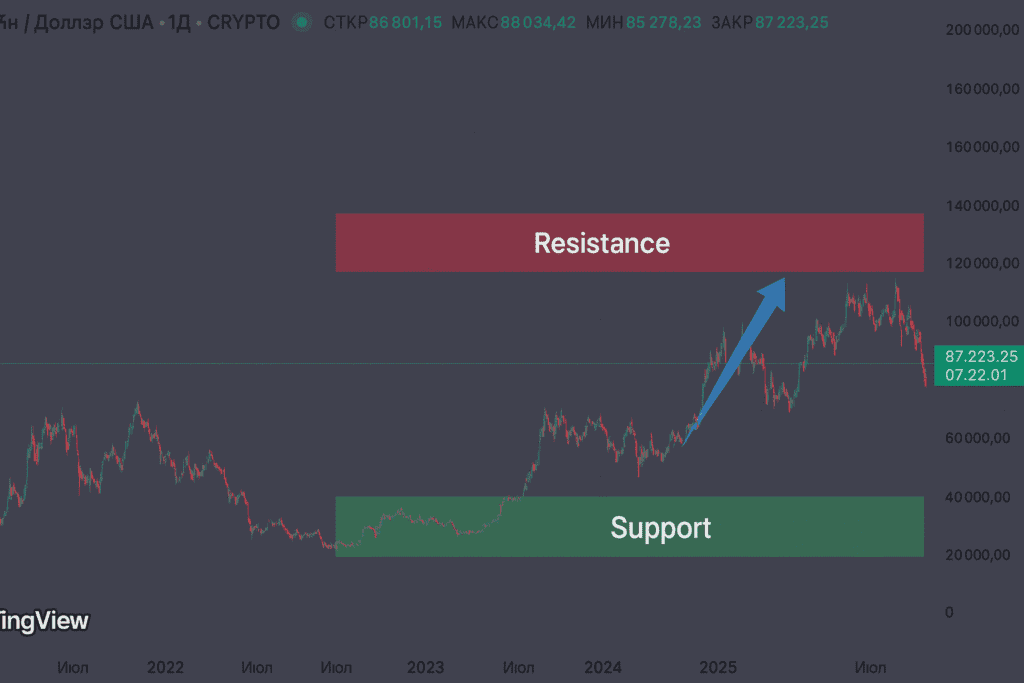 - The $85K–$90K macro support area has produced high-energy bounces in previous cycles.
