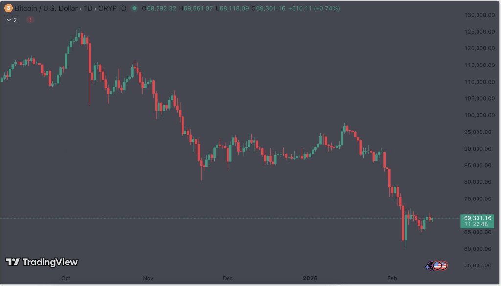 - A daily close below $69,800 shifts the probability away from continuation and toward deeper retest behavior.