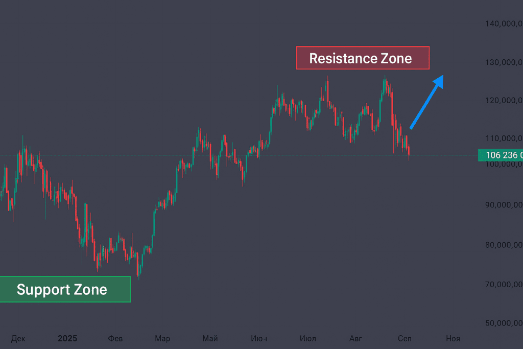 A bullish continuation becomes likely if Bitcoin successfully holds above the $106K–$107K support zone and breaks through $111K resistance on strong volume.
